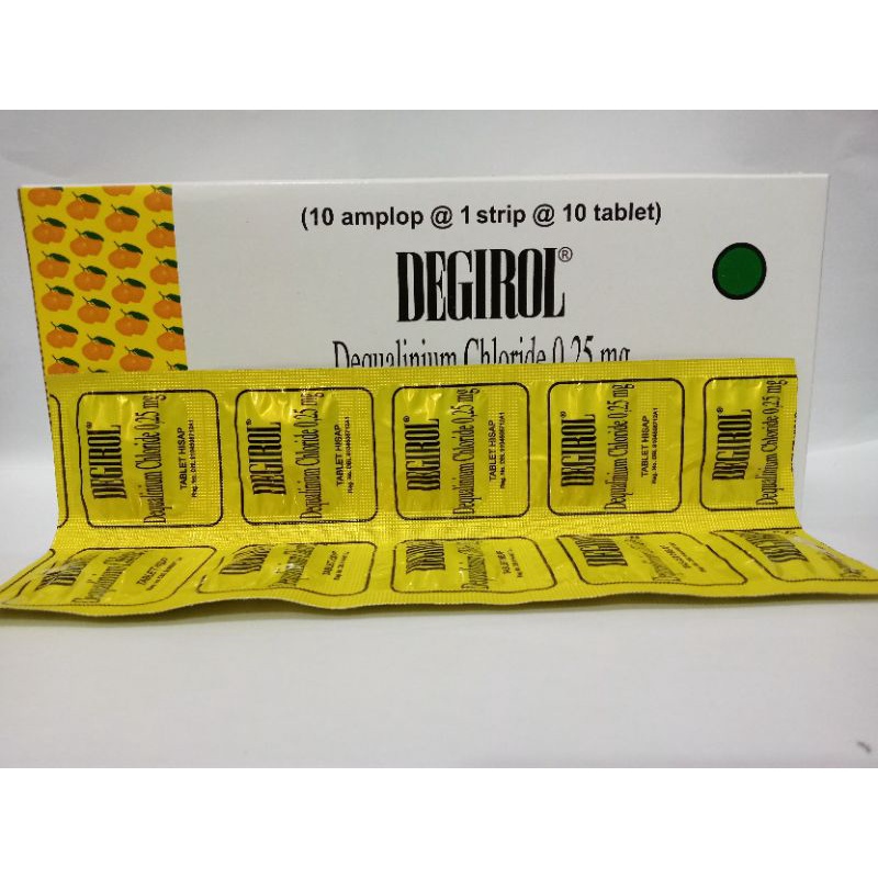 Degirol mudah ditemukan di apotik mana saja. Mengandung Dequalinium Chloride SP Troches dapat dikonsumsi untuk mengobati berbagai keluhan yang dialami terutama akibat peradangan seperti radang gusi sakit tenggorokan. Obat ini adalah tablet hisap dengan rasa lemon yang mudah dikonsumsi untuk kamu yang sulit menelan tablet.